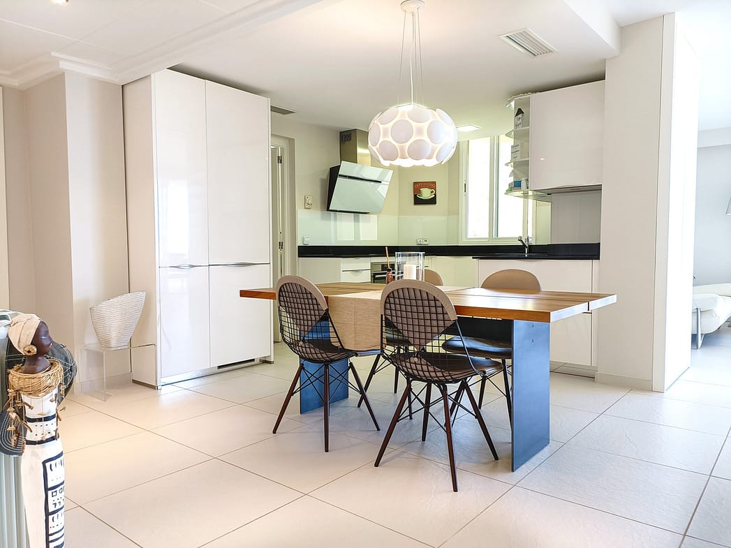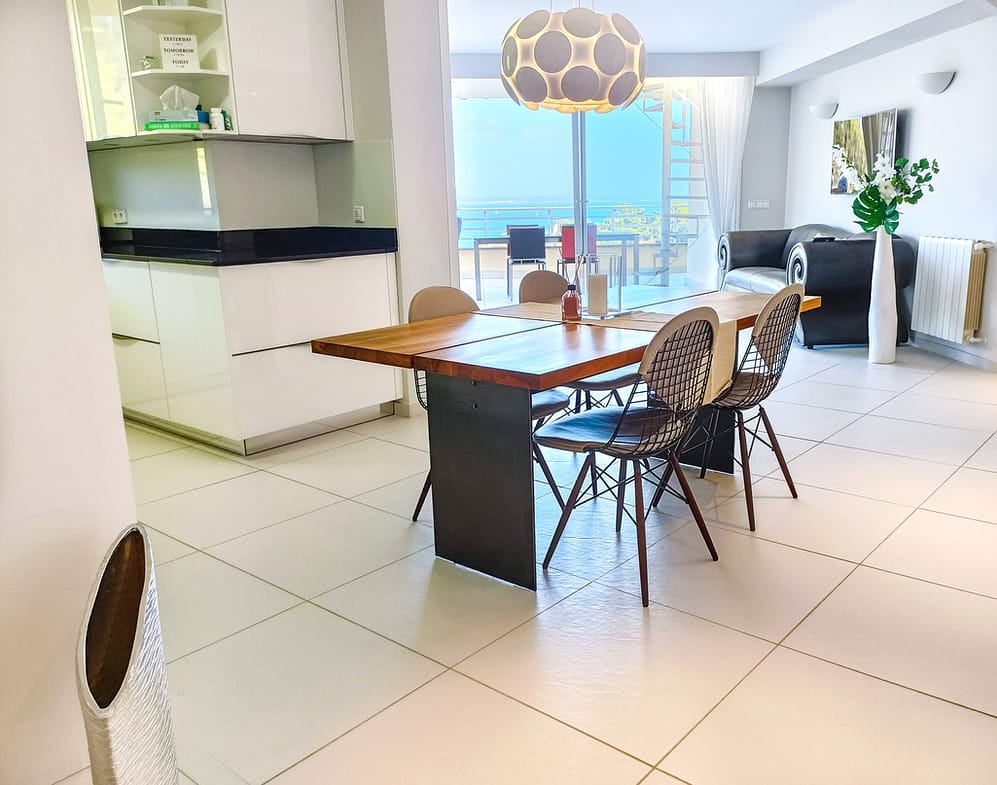 The property has been fully refurbished and includes high-end design furniture. It consists of 128 m2 of living area distributed onto 3 double bedrooms, 2 bathrooms (1 en-suite), 1 guest bath, a large dining/living room, semi-open floor kitchen, laundry room, and a large terrace. One of the highlights of the property is an exclusive-use 70m2 roof-top terrace with an incredible panoramic view of the forest landscape, sea, and Palma bay views. In addition, there are two own parking spaces in the underground parking and a storage room.
