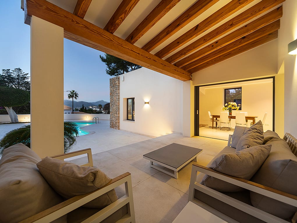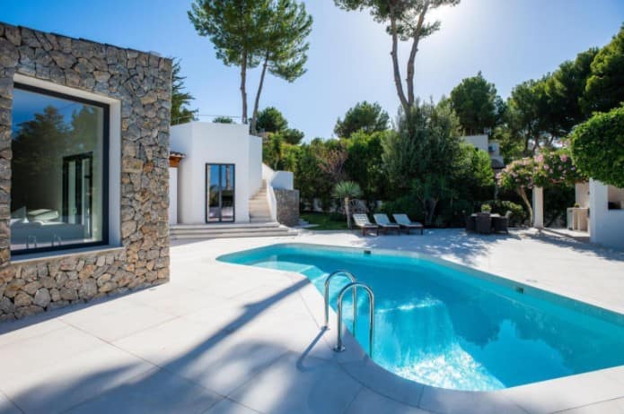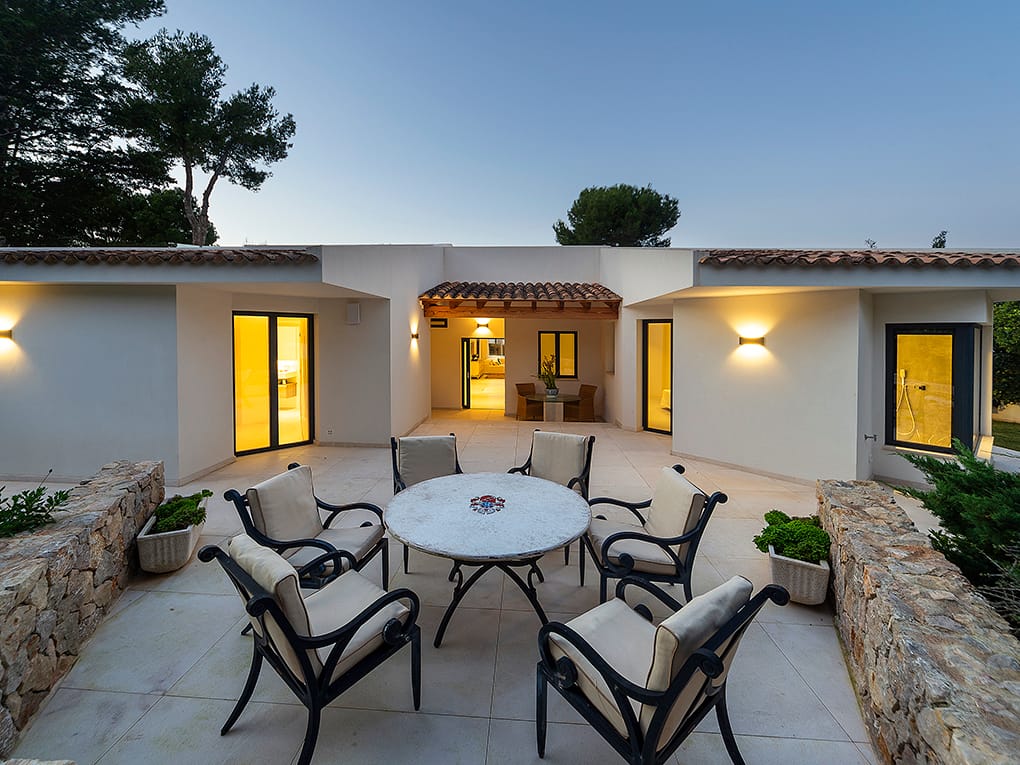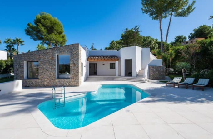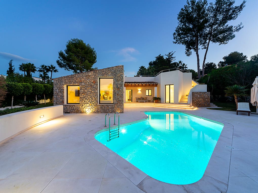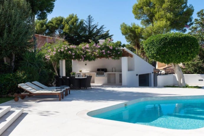 This elegant and functional southwest-facing house is located in the beautiful Nova Santa Ponsa close to amenities and the beach.Distributed on one floor and surrounded by a lovely garden with high walls for more privacy and a swimming pool of 25 m2. The property has a constructed area of approximately 303 m2. on a plot of 1639 m2. The house consists of 4 double bedrooms with bathroom en suite, spacious living room, dining room, kitchen all in open plan and large roof terrace with barbecue and nice sea and mountain views. All four rooms of the house are flooded with light and have wonderful views of the garden. We emphasize the high quality of the remodeling of this house with complete equipment and attention to detail. Its majestic garden offers the possibility of relaxing in the swimming pool without having to move from the site as it has its own toilet and showers. Innumerable flowers and trees provide that much desired Mediterranean touch…The property has a garage with very spacious parking spaces, with room for up to six large cars, plus a space for a motorcycle. The house is located in a quiet area and isolated from traffic, but well-connected and easily accessible. Located 2min from Club Nautico and 5min from the center, where you will find all services.