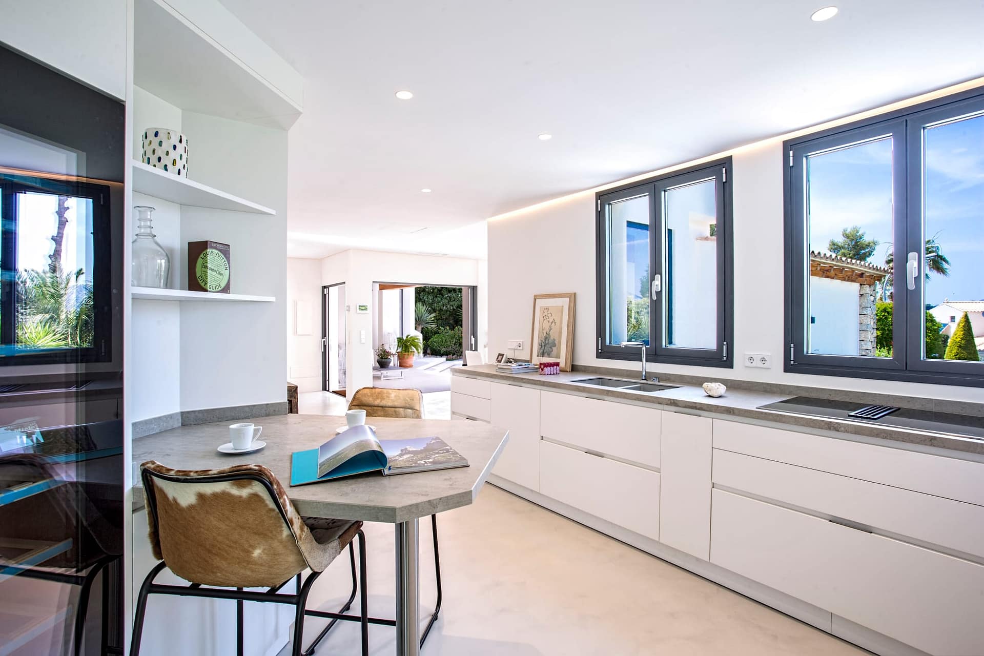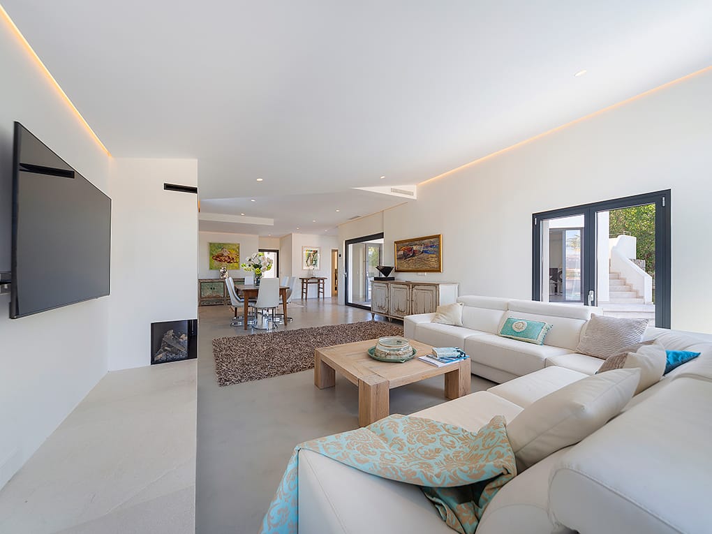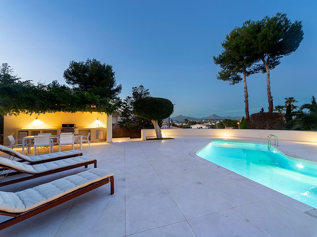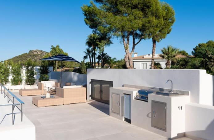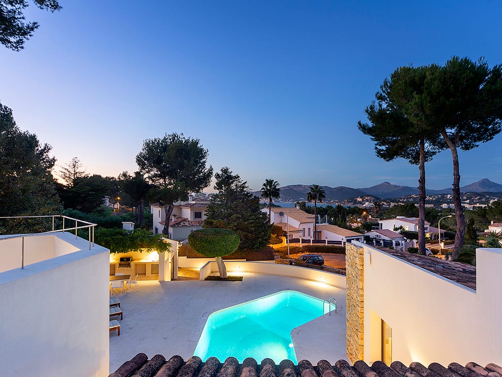This elegant and functional southwest-facing house is located in the beautiful Nova Santa Ponsa close to amenities and the beach.Distributed on one floor and surrounded by a lovely garden with high walls for more privacy and a swimming pool of 25 m2. The property has a constructed area of approximately 303 m2. on a plot of 1639 m2. The house consists of 4 double bedrooms with bathroom en suite, spacious living room, dining room, kitchen all in open plan and large roof terrace with barbecue and nice sea and mountain views. All four rooms of the house are flooded with light and have wonderful views of the garden. We emphasize the high quality of the remodeling of this house with complete equipment and attention to detail. Its majestic garden offers the possibility of relaxing in the swimming pool without having to move from the site as it has its own toilet and showers. Innumerable flowers and trees provide that much desired Mediterranean touch…The property has a garage with very spacious parking spaces, with room for up to six large cars, plus a space for a motorcycle. The house is located in a quiet area and isolated from traffic, but well-connected and easily accessible. Located 2min from Club Nautico and 5min from the center, where you will find all services.
