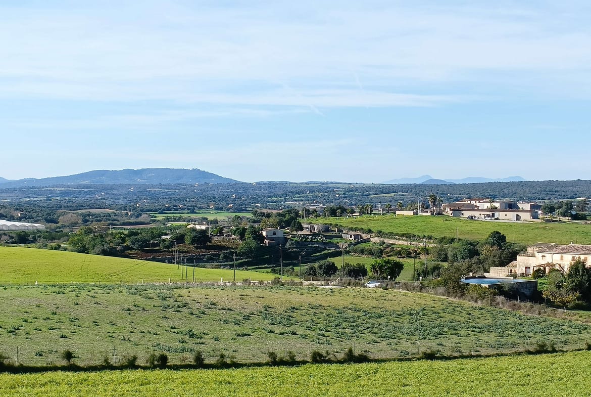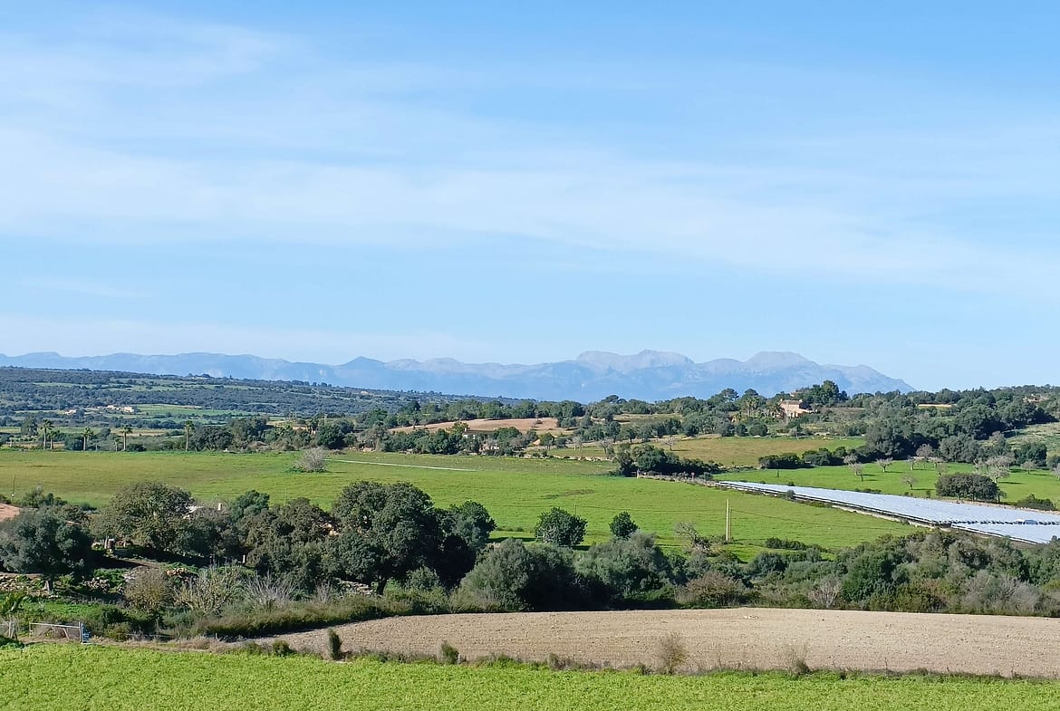 The plot is located on a hillside about 2 km from Manacor, and offers breathtaking panoramic views of the Tramuntana mountains. It measures 14057 m2 and currently has a project for a single family 2 story house with 4 bedrooms. The project has 300 m2 of constructed area plus terraces and a swimming pool. It has a Southwest orientation and is accessed by a private road.