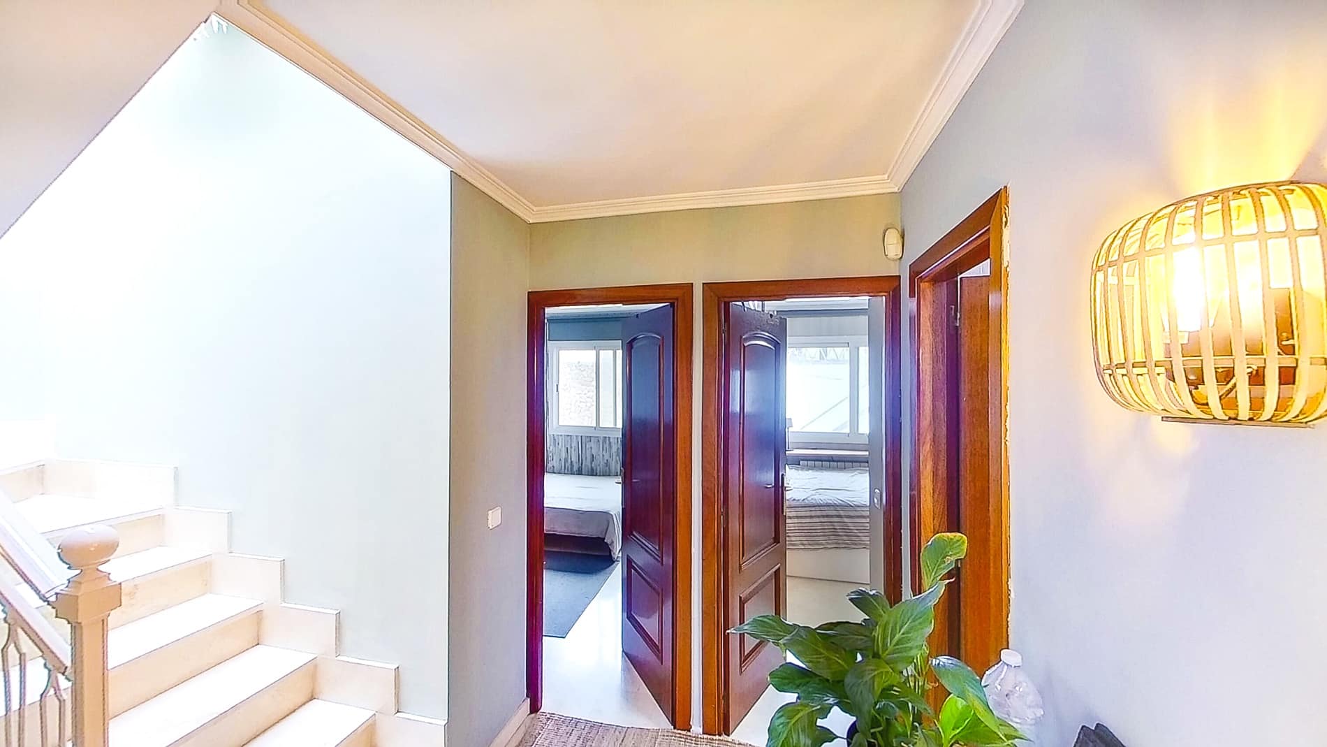 This beautiful house is located in a quiet residential area, 2 minutes walk from the beautiful beach of Cala Major. The ground floor consists of a fully equipped kitchen with its pantry and utility room, and a big spacious living room alongside a guest toilet. bright spacious terrace with a barbecue and dining area. On the second floor are three bedrooms, one master bedroom with a walk-in closet and bathroom en-suite, and two double bedrooms with fitted wardrobes. From the master bedroom, you have access to a cozy and private terrace. also an additional bathroom with a bathtub on the first floor. On the second floor, you have access to the roof terrace and a large loft which can be used as an additional bedroom or home office space. From the ground floor, there is direct access to the spacious basement and garage with enough space for two cars that Leeds to the residential area of CALA MALLOR, there is a big trastero/storage in the garage. The property has approximately 220 sqm of living area and about 100 sqm of terraces, distributed on the three levels. This house is great for beach lovers and family days with all the family.